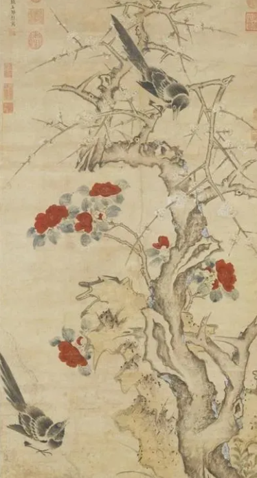 在儒家“君子比德”观念浸润下,中国画创作者自古将自然万物纳入道德审视的视野,赋予其人格化的精神内涵。天地草木、鸟兽虫鱼皆被视为不同品格的象征。在辞旧迎新的时节,自然景物更化作映照人格襟怀、寄托理想愿景的图像写照,尽显中国人独有的审美旨趣与精神理想。